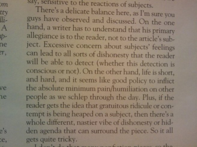 I Stole This From John Gilmore’s Facebook Feed 8 Feb 20108 Feb 2010 ~ Chris Cocca David Foster Wallace on the treatment of human subjects in writing, via John Gilmore: share: Click to share on X (Opens in new window) X Click to share on Facebook (Opens in new window) Facebook Click to share on Reddit (Opens in new window) Reddit Click to share on Pinterest (Opens in new window) Pinterest Click to share on Tumblr (Opens in new window) Tumblr Click to email a link to a friend (Opens in new window) Email More Click to share on LinkedIn (Opens in new window) LinkedIn Like Loading...