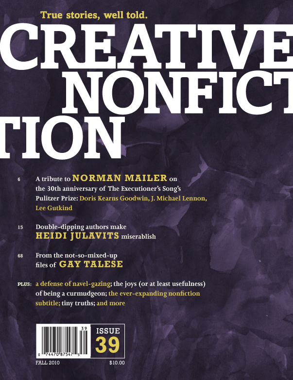 One of my tweets is in Creative Nonfiction‘s back of the book “Tiny Truths” section this month. John Gilmore has an essay (which I haven’t yet read but am sure is amazing) in this issue as well. So you should buy it.