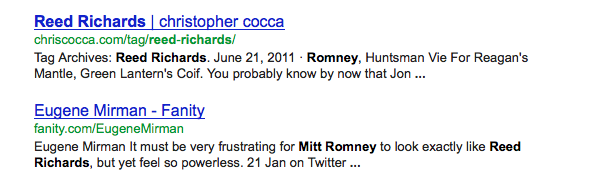 We were all over this back in June, but yes, Mitt Romney looks exactly like Reed Richards. I mention it now because because “Mitt Romney Reed Richards” has been a trending search term for the past few days.  In case you don’t know, this is why: