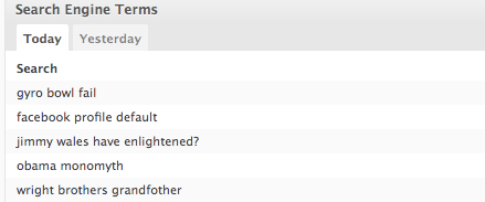 Just a few of the search terms people used to get their daily dose of Cocca today. Just a few of the reasons I freakin’ love you, blogging:
