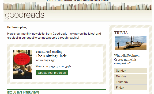 Of all the social media services I use, Goodreads is the one I clearly use least.